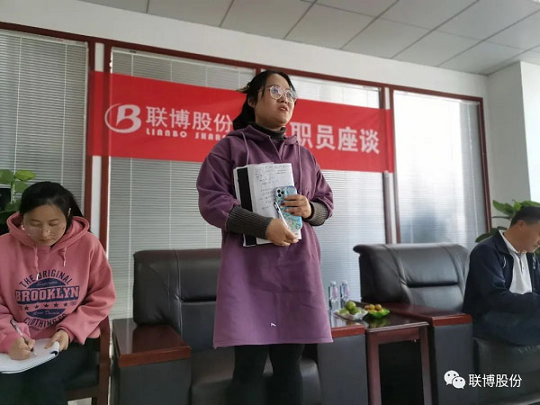 最后,肖總做總結發言,他表示本次座談為關愛新員工開了個好頭,我們要把關愛員工做到實處,并號召老員工要發揚“傳幫帶”精神,與新員工齊肩并進,共同奮斗,共同進步,為聯博的快速發展作出更大的貢獻,攜手鑄就卓越平臺,共同譜寫美好明天!